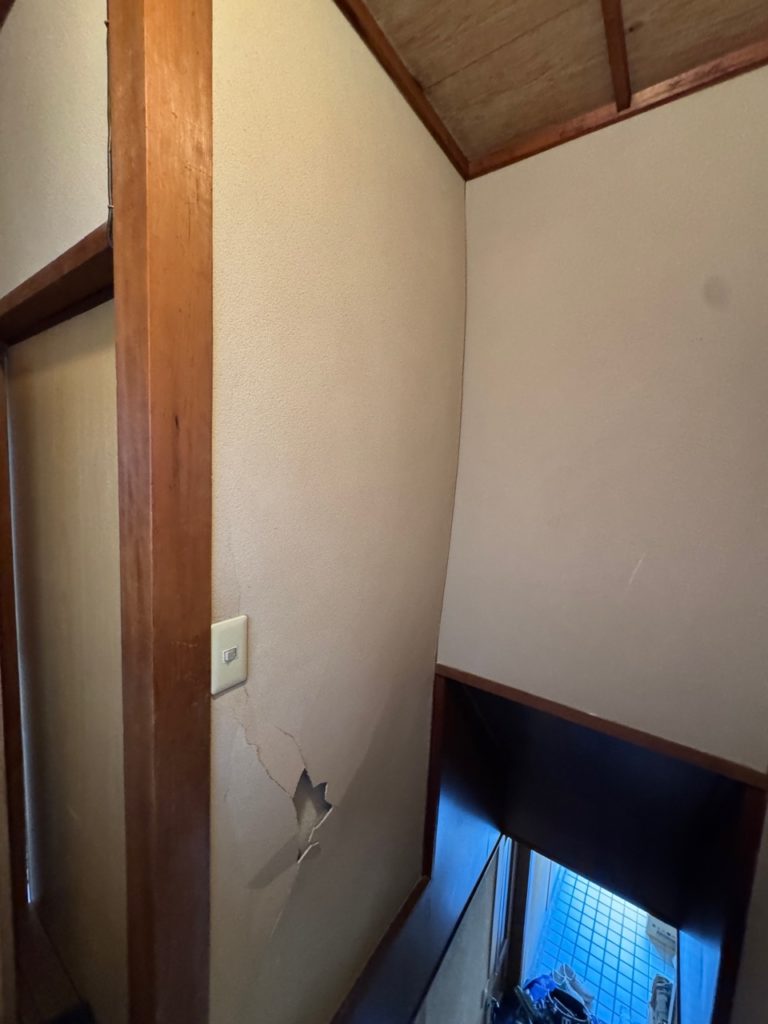 写真のように、壁は少し触れただけでも剥がれ落ちる状態でした。