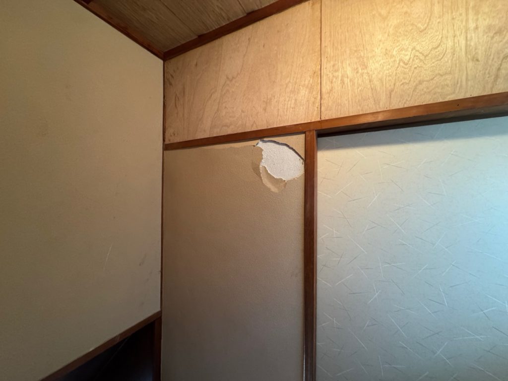 聚楽壁は経年劣化で表面が浮きやすく、少しの衝撃でも大きく剥がれてしまうことがあります。