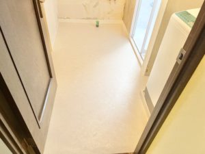 月曜日は洗面室のクロスを貼って仕上げて、火曜日からはシステムキッチンの工事に取り掛かります。