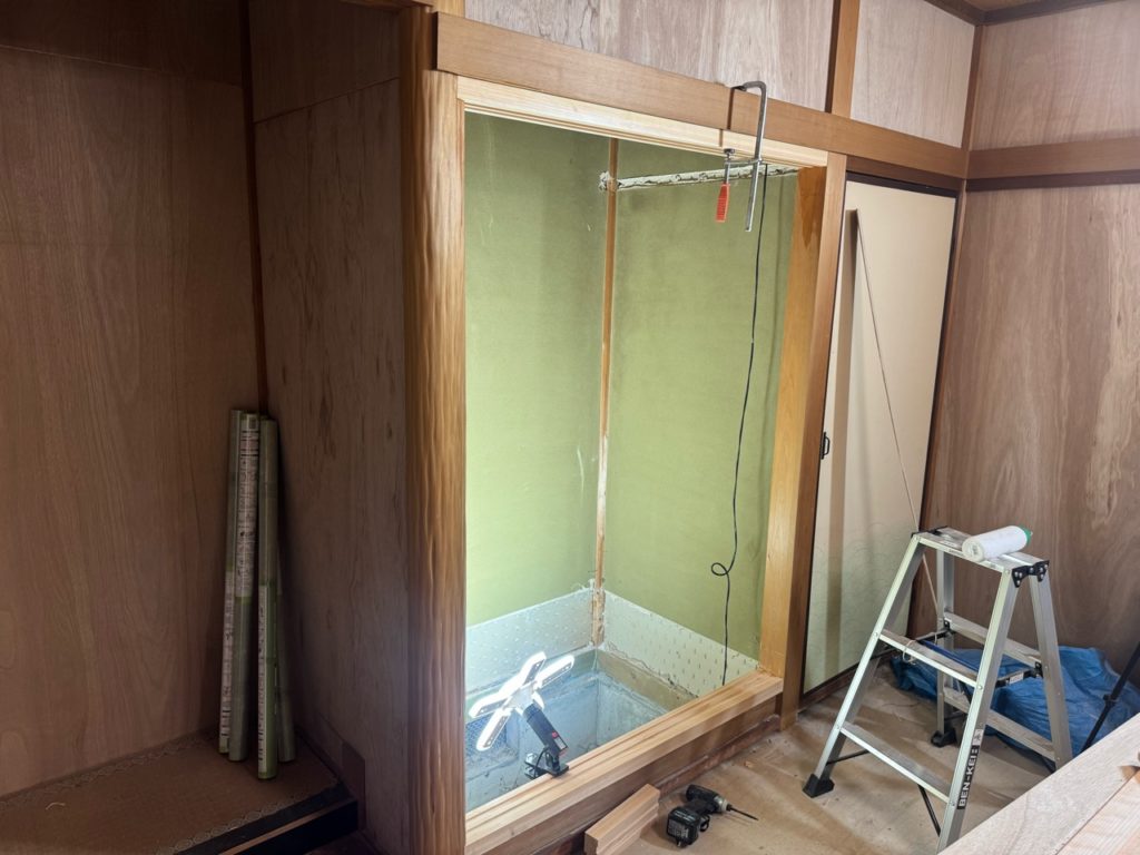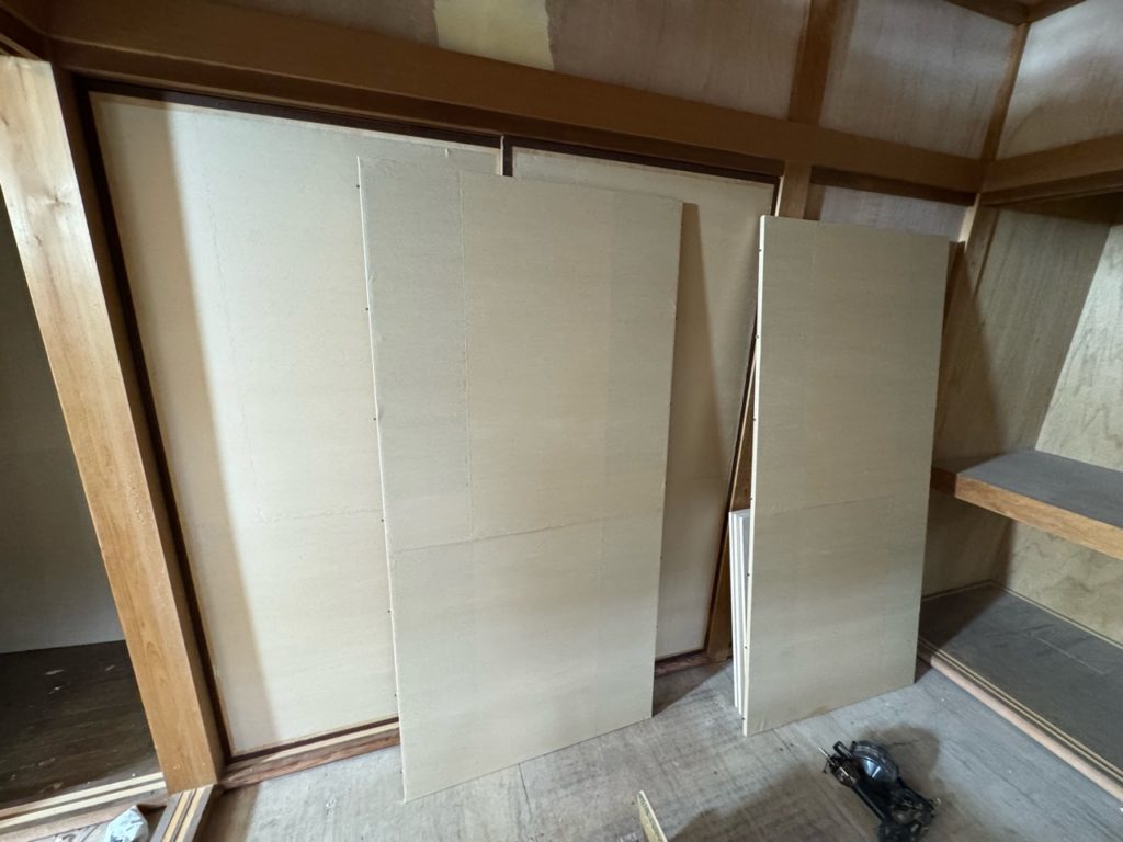 化粧ベニヤを張り終え中段を取り付け残すは襖の取付です。